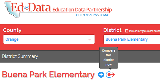 You can compare district finances, or view data for multiple districts in one place by clicking the icon to get to district comparisons. You'll find it right by the district name: